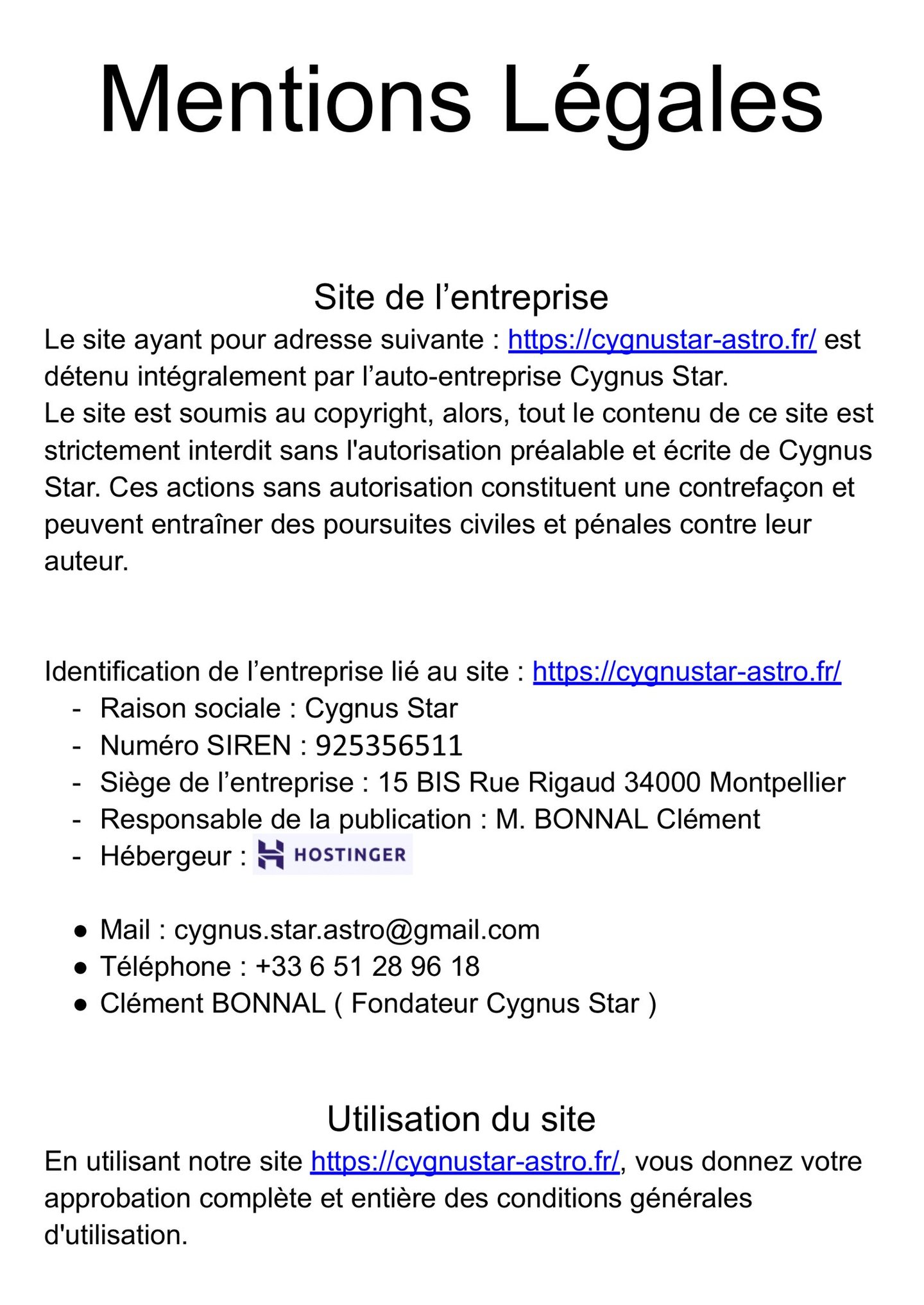 Pour exercer ces droits, contactez-nous à : cygnus.star.astro@gmail.com. Nous nous engageons à répondre dans un délai de 30 jours ouvrables.
